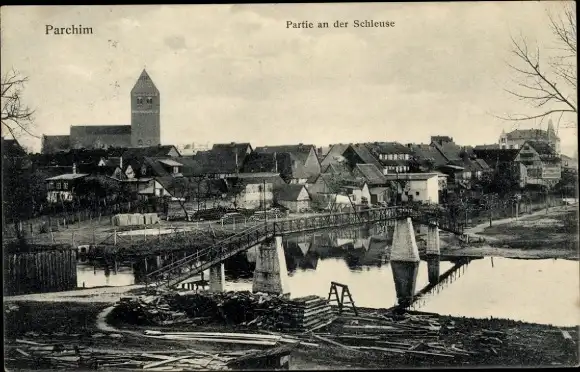 Ak Parchim in Mecklenburg, Partie an der Schleuse