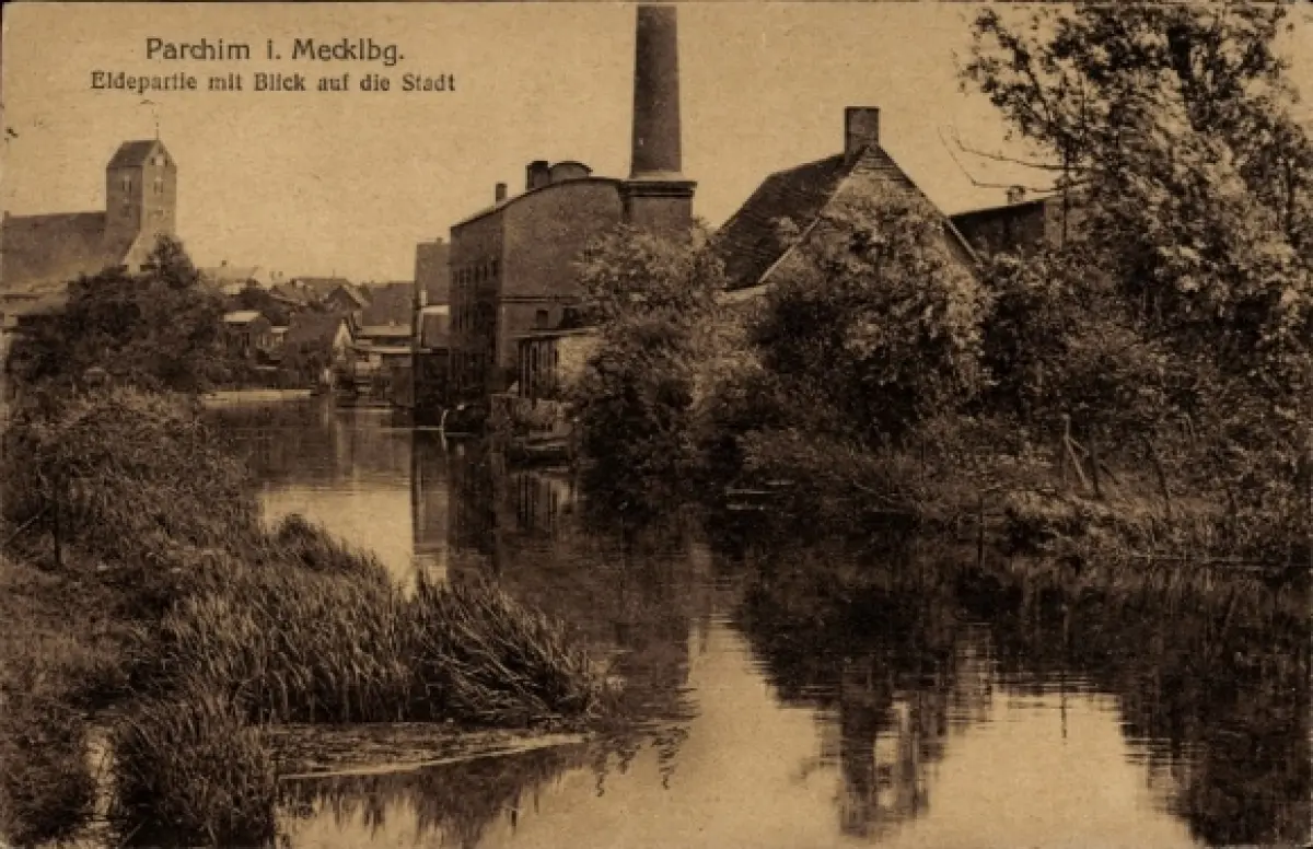 Ak Parchim in Mecklenburg, Teilansicht, Eldepartie