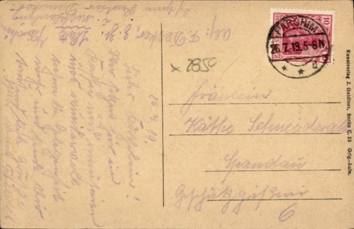 Zustand, siehe Scan, gelaufen, 1919 - ca 14 cm X 9 cm