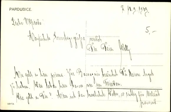 Ansichtskarte, Postkarte, Pardubice, Pardubitz