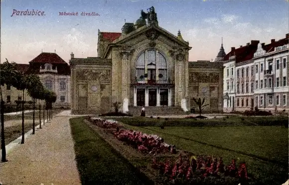 Ak Pardubice Pardubitz Stadt, Mestske divadlo, Stadttheater