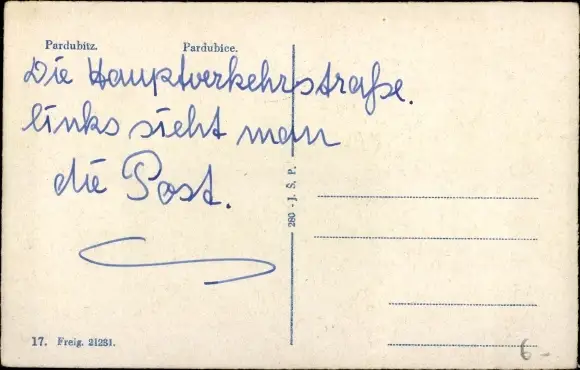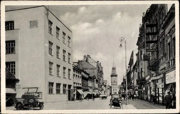 Ak Pardubice Pardubitz Stadt, Straßenpartie, Lieferwagen F. Wurst, Postamt