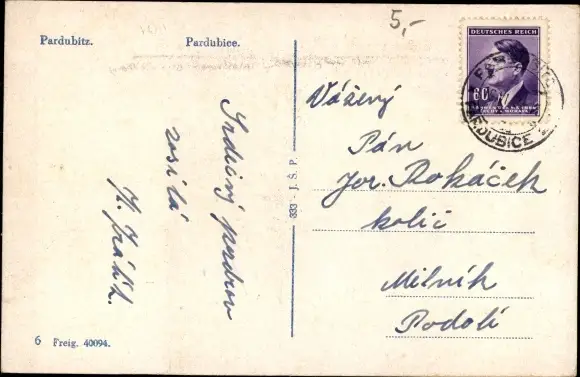 Ansichtskarte, Postkarte, Pardubice, Pardubitz