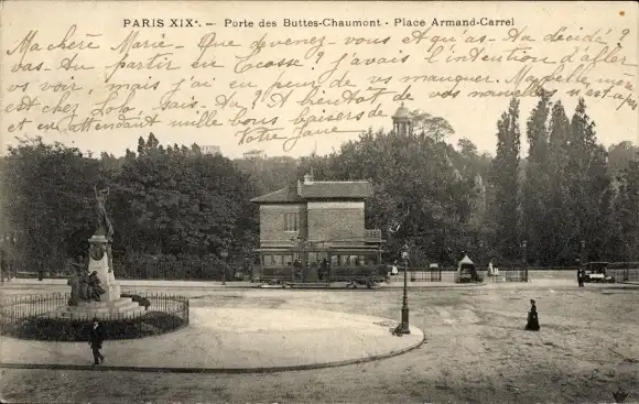 Ak Paris 19. Jahrhundert, Porte des Buttes Chaumont, Place Armand Carrel