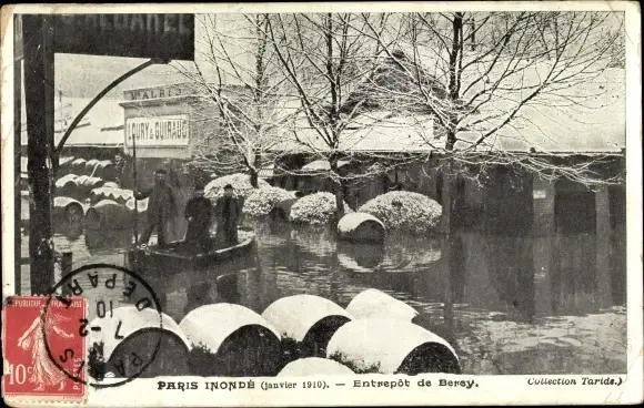 Ak Paris, Crue de la Seine, Entrepôt de Bercy, Tonneaux
