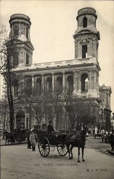 Ak Paris Frankreich, Saint Sulpice, Kirche, Kirche, Pferdekutsche