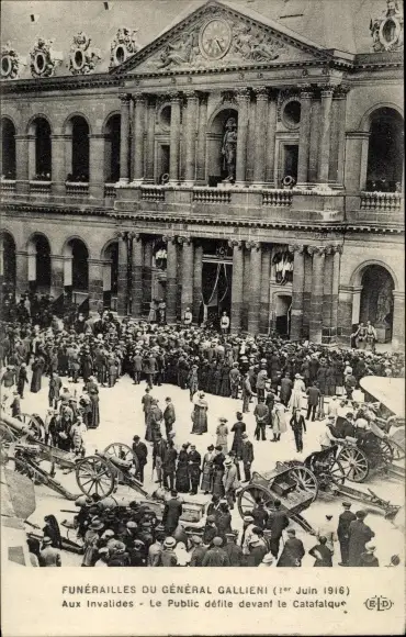 Ak Paris, Funerailles du General Gallieni, Aux Invalides, Le Public defile devant le Catafalque