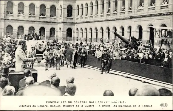 Ak Paris, Funerailles du General Gallieni, Discours du General Roques