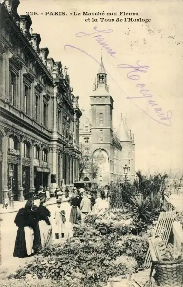 Ak Paris I Louvre, Blumenmarkt, Uhrturm