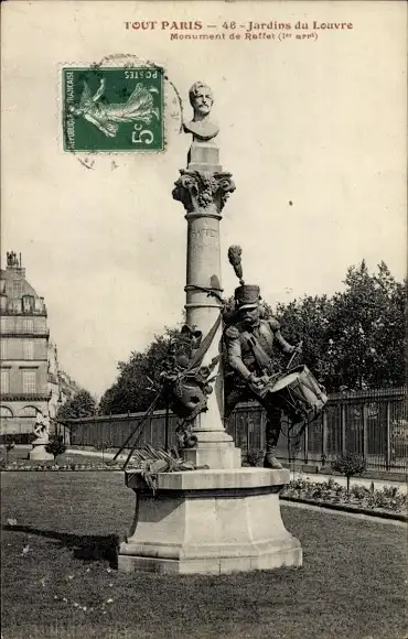Ak Paris I Louvre, Louvre-Gärten, Raffet-Denkmal