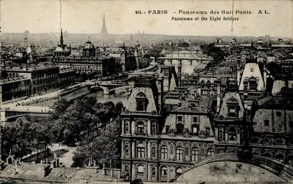 Ak Paris I Louvre, Panorama mit seiner Brücke