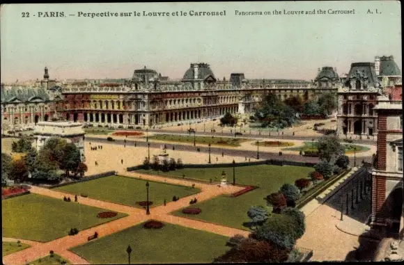 Ak Paris I Louvre, Perspective sur le Louvre et le Carssousel