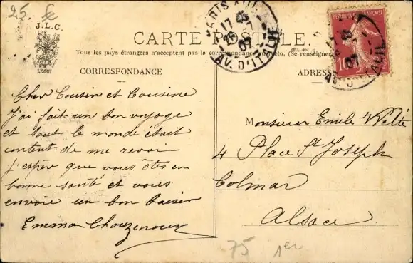 Zustand, siehe Scan, gelaufen, 1907 - ca 14 cm X 9 cm