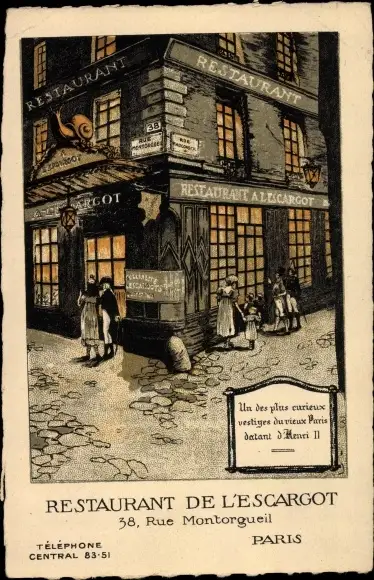 Ak Paris I., Restaurant de l'Escargot, Rue Montorgueil