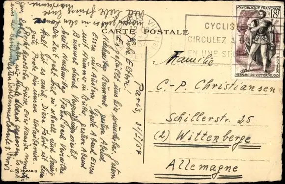 Zustand, siehe Scan, gelaufen, 1954 - ca 9 cm X 14 cm