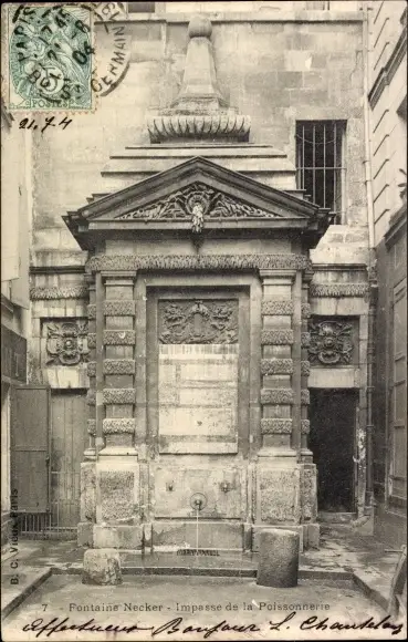 Ak Paris IV, Fontaine Necker, Trinkwasserquelle, Impasse de la Poissonnerie