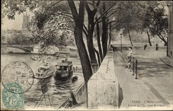 Ak Paris IV Ile St. Louis, Pointe de l'Ile, quai Bourbon