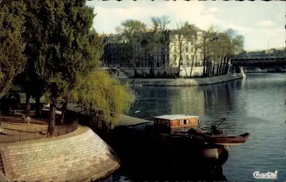 Ak Paris IV Ile de la Cité, Pointe de I'Ile Saint-Louis, Binnenschiff