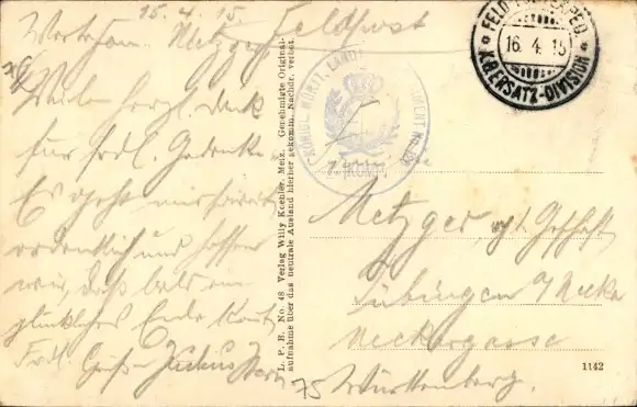 Zustand, siehe Scan, gelaufen, 1915 - ca 9 cm X 14 cm