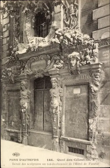 Ak Paris IV, Paris D'Autrefois, 144. Quai des Celestins, 2, Detail de sculptures au ruz-de-chaussee