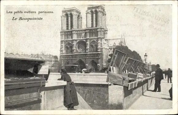 Ak Paris IV., Petits métiers parisiens, Le Bouquiniste, Note Dame