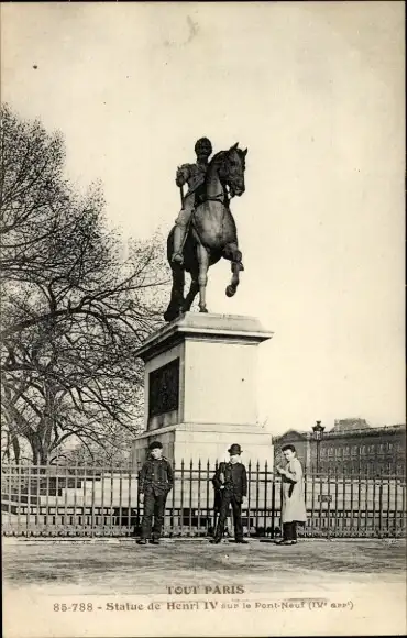 Ak Paris IV, Pont Neuf, Reiterstatue von Heinrich IV