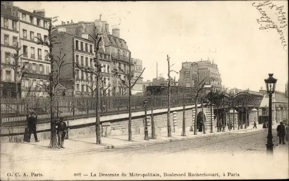 Ak Paris IX. Arrondissement Opéra, La Descente du Metropolitain, Boulevard Rochechouart
