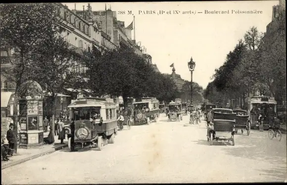 Ak Paris IX, Boulevard Poissonnière, Kutsche, Mercedes Bus