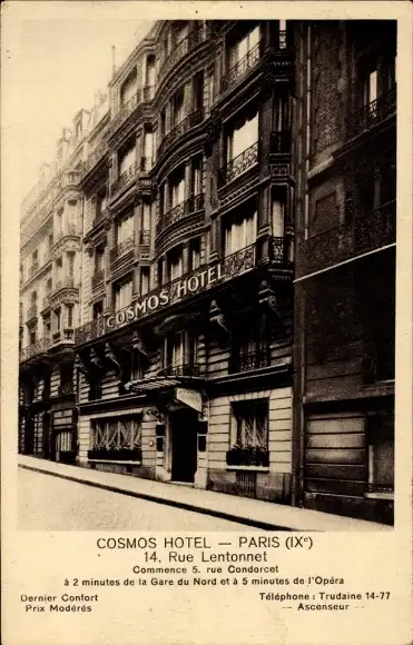Ak Paris IX, Cosmos Hotel, Rue Lentonnet