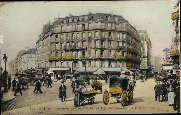 Ak Paris IX, Kreuzung von Chateaudun und Montmartre