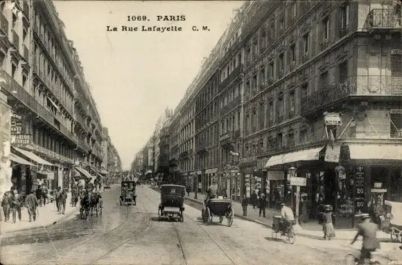 Ak Paris IX., La Rue Lafayette, Geschäfte, Kutschen