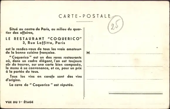 Ak Paris IX, Le Restaurant Coquerico, 3 Rue Laffitte, 1er Etage