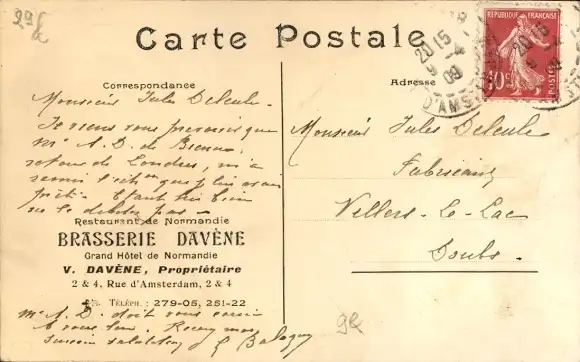Ak Paris IX, Rue d’Amsterdam, Brasserie Davene