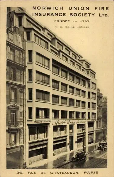 Ak Paris IX, Rue de Châteaudun, Norwich Union Fire