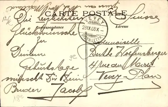 Zustand, siehe Scan, gelaufen, 1908 - ca 14 cm X 9 cm