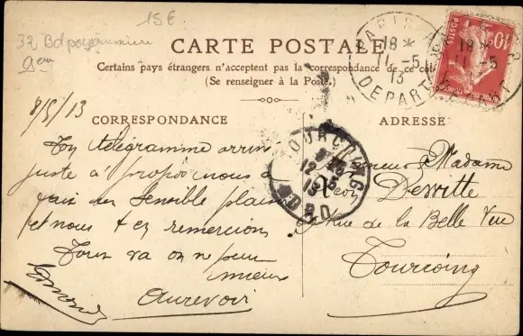 Zustand, siehe Scan, gelaufen, 1913 - ca 14 cm X 9 cm
