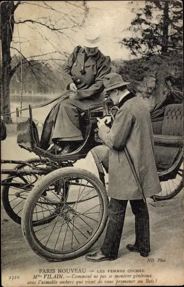 Ak Paris, Kutscherin Mademoiselle Vilain, Kunde