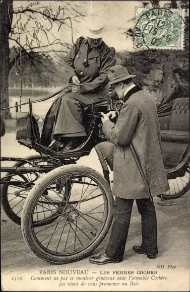 Ak Paris, Kutscherin mit Kunde