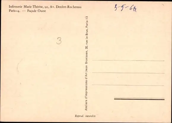 Ak Paris, Marie-Therese-Krankenstation, Westfassade