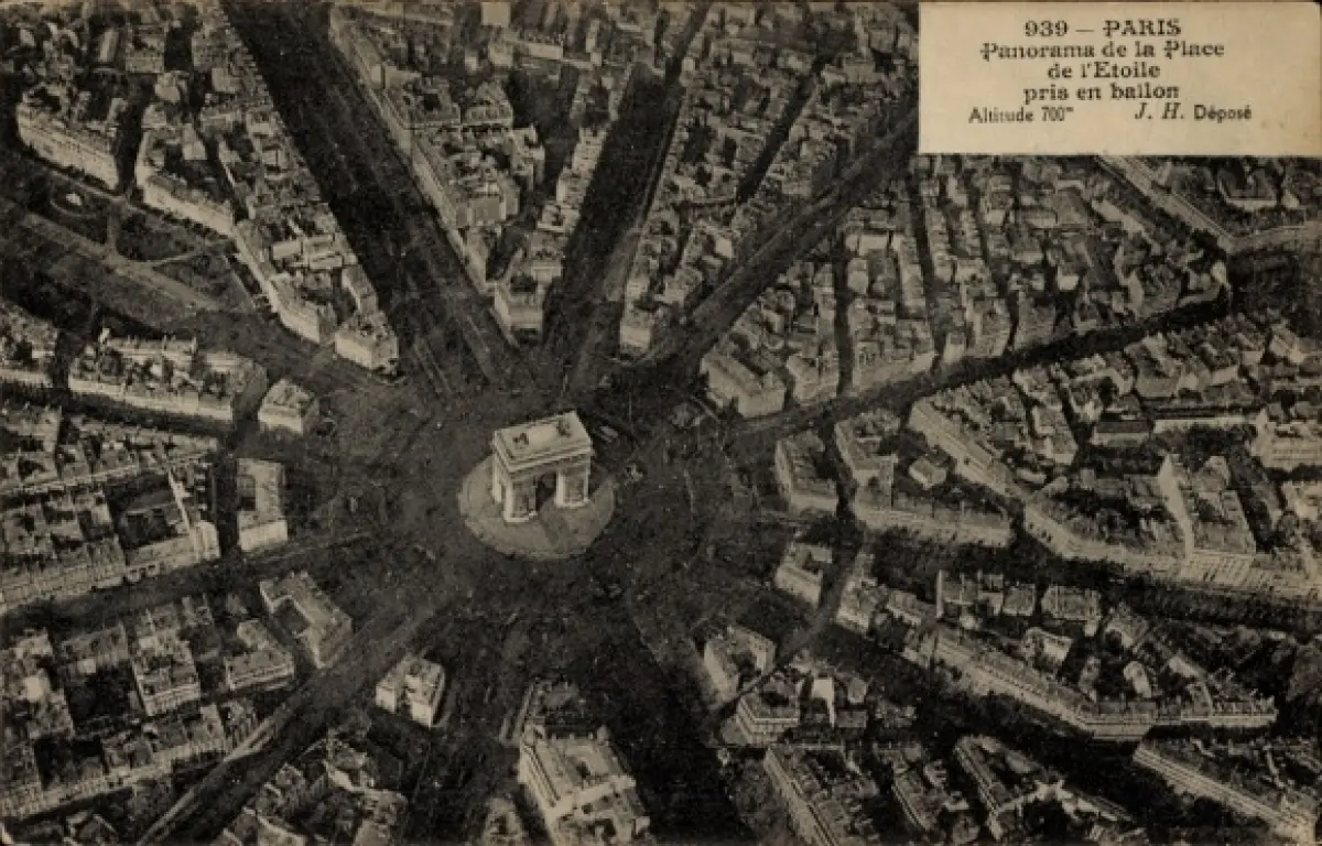 Ak Paris, Place de l'Etoile, Arc de Triomphe, Fliegeraufnahme aus dem Ballon