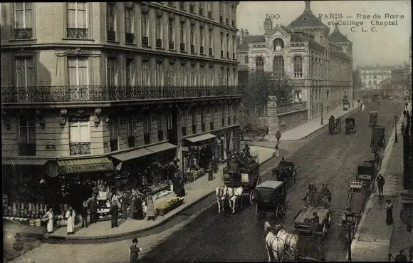Ak Paris, Rue de Rome, College Chaptal, Kutsche