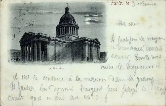 Ak Paris V, Pantheon bei Nacht