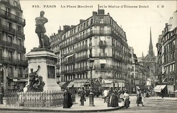 Ak Paris V, Place Maubert, Statue von Étienne Dolet
