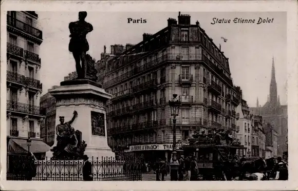 Ak Paris V, Place Maubert, Statue von Étienne Dolet