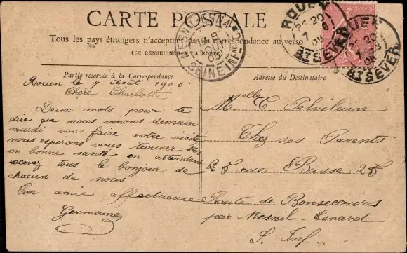 Zustand, siehe Scan, gelaufen, 1905 - ca 14 cm X 9 cm