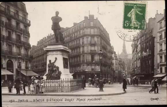 Ak Paris V., Statue d'Etienne Dolet, Place Maubert