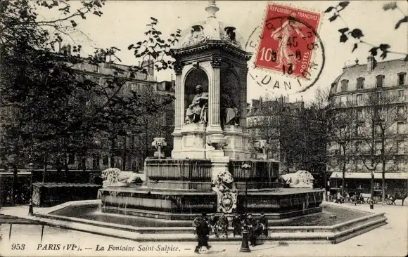 Ak Paris VI, La Fontaine Saint Sulpice, Geschäft