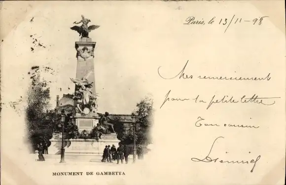Ak Paris VI, Monument de Gambetta