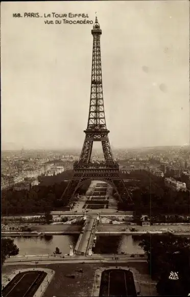 Ak Paris VII, Der Eiffelturm, Eiffelturm, Blick vom Trocadero