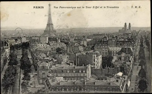Ak Paris VII, La Tour Eiffel, Eiffelturm, Trocadero, Panorama